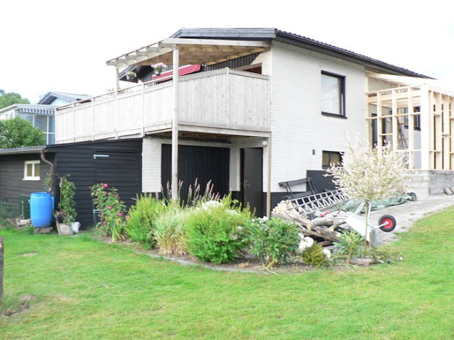 Vi har ett typ liknande sluttningshus med lång balkong. Vår balkong var mörkbrun när vi flyttade in, sedan målade vi den grå men blev inte nöjd sedan utevit det blev bättre. Jag är trots det inte nöjd iallafall, kanske just svart skulle bli snyggt. Jag tycker den vita är snyggast på din bild men som sagt det kanske är snyggare med svart, visst är det svårt att välja?!