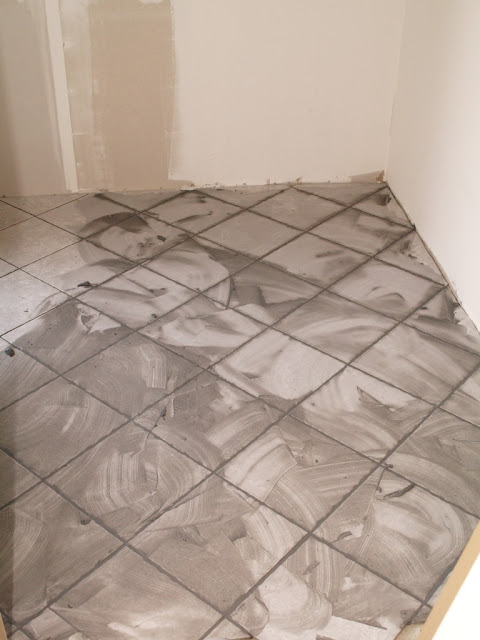 Så vi/jag tänkte om och det blev ljusgrått klinker med lite brunt och silver i!