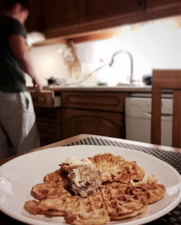 2 kokta ägg med 2 msk smör mosades ihop - MIDDAG – Äggvåffor