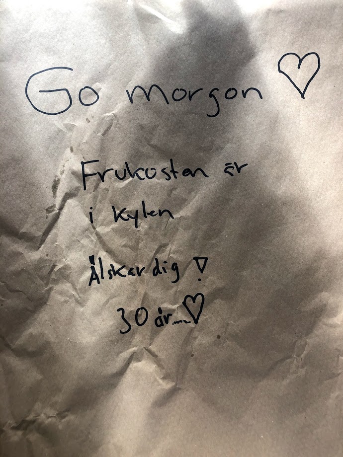 Förra året firade vi att vi varit ihop i 30 år och nästa år firar vi 30 år som man och fru.